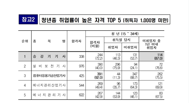 2023년 한국산업인력공단에서 발표한 청년취업률이 높은 국가기술자격증입니다.