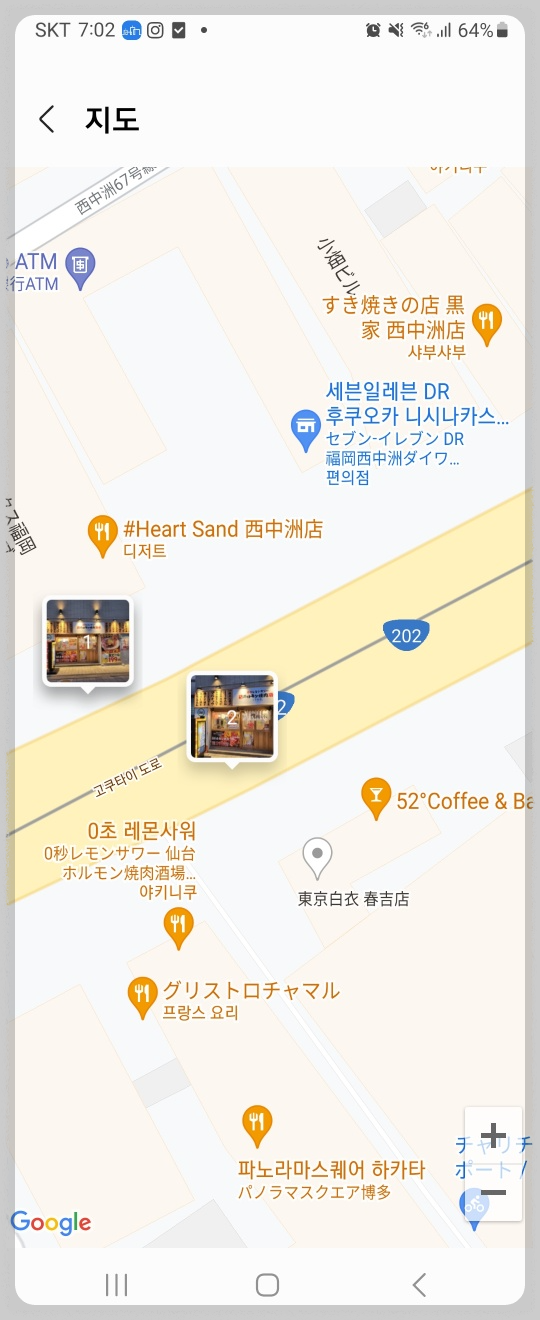 후쿠오카 야키니쿠 맛집 '0초 레몬사와'의 위치는 텐진역 기준 도보로 10~15분 정도 걸리는 것 같습니다.